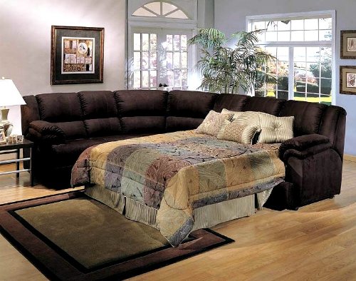 - Sit and relax on this great brown microfiber recliner sectional sleeper sofa.